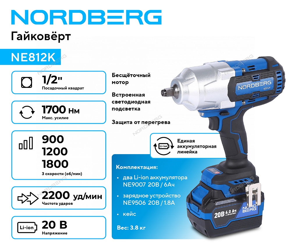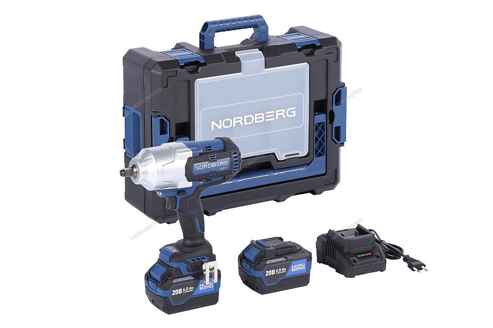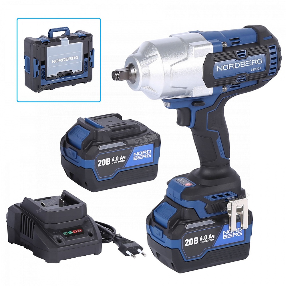 Гайковерт аккумуляторный, 1/2", 21 В, 1700 Нм, 2 аккумулятора 6A и зарядное устройство, в кейсе NORDBERG NE812K купить в Тюмени цена ✅ - Все для СТО