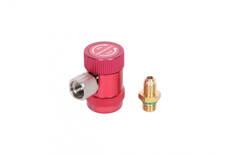 Муфта высокого давления с вентилем быстросъемная красная NORDBERG NFA8H предназначена для подсоединения к порту низкого давления автомобильного кондиционера без открытия доступа к системе циркуляции хладагента.