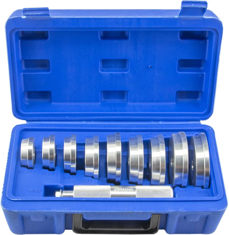 - Оправки для запрессовки 39.5, 44.5, 50, 59, 63, 65, 72, 76, 81 мм - 9 шт.;