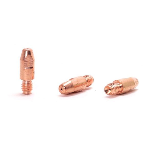 Наконечник – расходная часть MIG/MAG горелки, которая обеспечивает токосъём в процессе сварки, поэтому наконечники, так же называют контактными. Кроме того, через наконечник в процессе сварки подаётся проволока. Для оптимальной работы и идеального контакта необходимо, чтобы диаметр отверстия наконечника и сечение проволоки – совпадали.