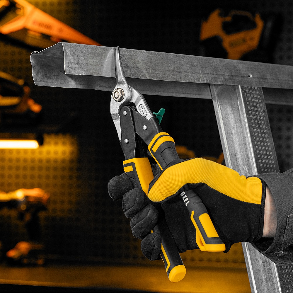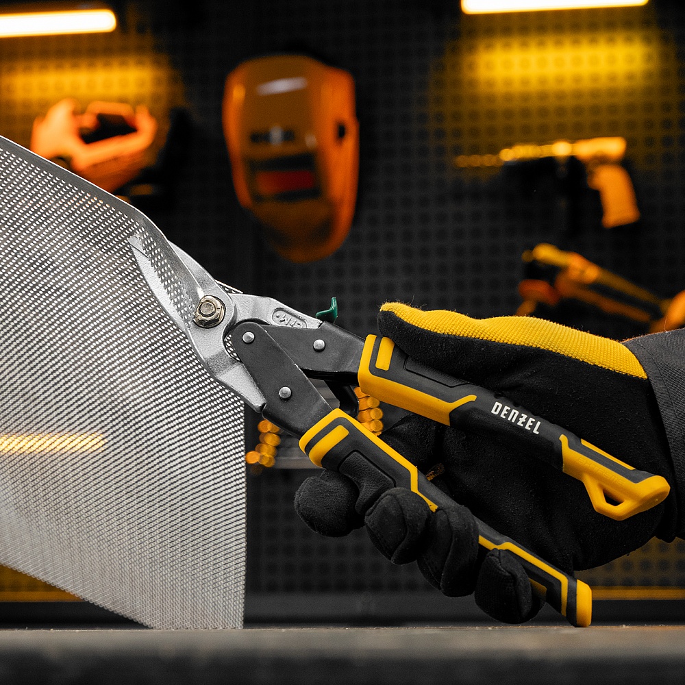 Ножницы по металлу, 270 мм, прямой и правый рез, сталь-СrMo, трехкомпонентные рукоятки Denzel