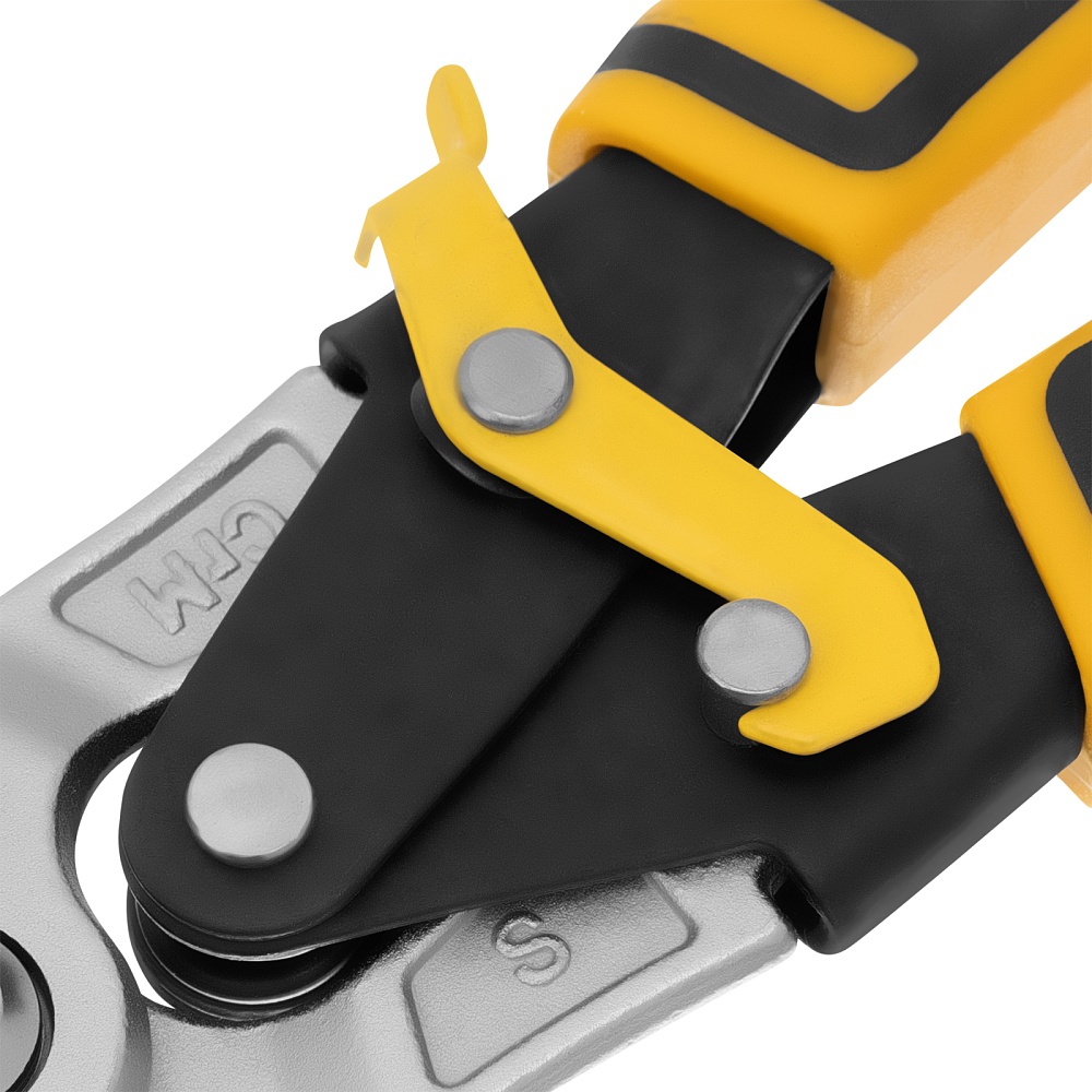 <p>Ножницы по металлу Denzel 78370 общей длиной 270 мм, из стали-CrMo, с трехкомпонентными рукоятками, предназначены для прямого реза листовых металлических заготовок и металлопрофиля толщиной до 1,2 мм. Инструмент с усиленной конструкцией осевого шарнира рассчитан на профессиональное использование. Ножницы используются для проведения строительных, кровельных и слесарных работ.</p><h2>Преимущества</h2><ul><li>Высокое качество исполнения — ножницы изготовлены из прочной хромомолибденовой стали методом горячей штамповки, остро заточенные кованые лезвия с насечками не соскальзывают с заготовок.</li><li>Эффективность — режущие кромки закалены до твердости 60-62 HRC и легко справляются даже с прочной «нержавейкой».</li><li>Безопасность — блокировочный замок предотвращает случайное раскрытие лезвий во время транспортировки и хранения.</li><li>Комфортная работа — плоский соединительный винт не цепляется за заготовки, удлиненные трехкомпонентные рукоятки не выскальзывают из руки.</li><li>Удобное хранение — на рукоятке имеется проушина для подвешивания на крючок или гвоздь.</li></ul>