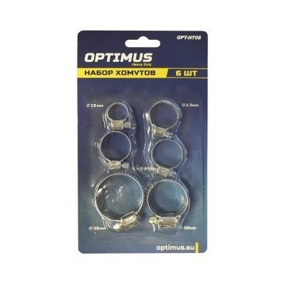 OPT-HT08 Хомуты червячные набор 6шт. 10-38 OPTIMUS купить в Тюмени цена ✅ - Все для СТО