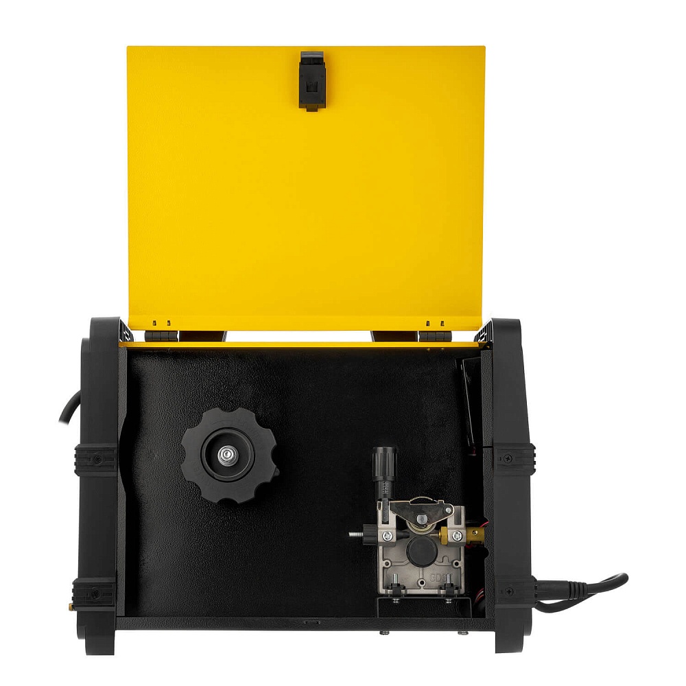 • Металлический 2-х роликовый механизм подачи проволоки для катушки с проволокой не более D200. Используются ролики габаритами 30х10х10. Скорость подачи проволоки 2–12 м/мин.