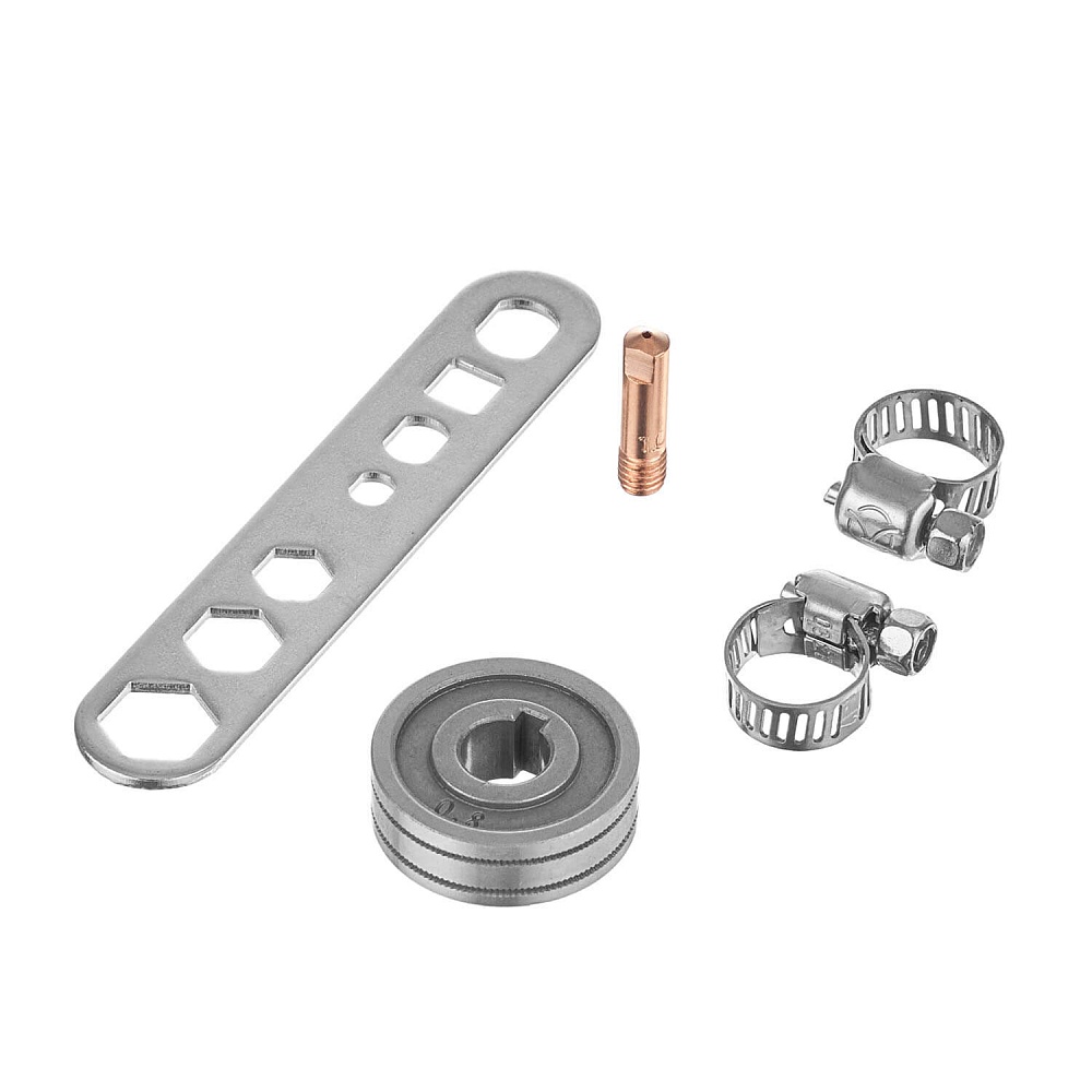 • Есть возможность подсоединения горелки Spool gun. Горелка не входит в комплект поставки и приобретается отдельно. При работе с такой горелкой доступны все базовые настройки, только скорость подачи проволоки будет фиксированная – 4 м/мин.