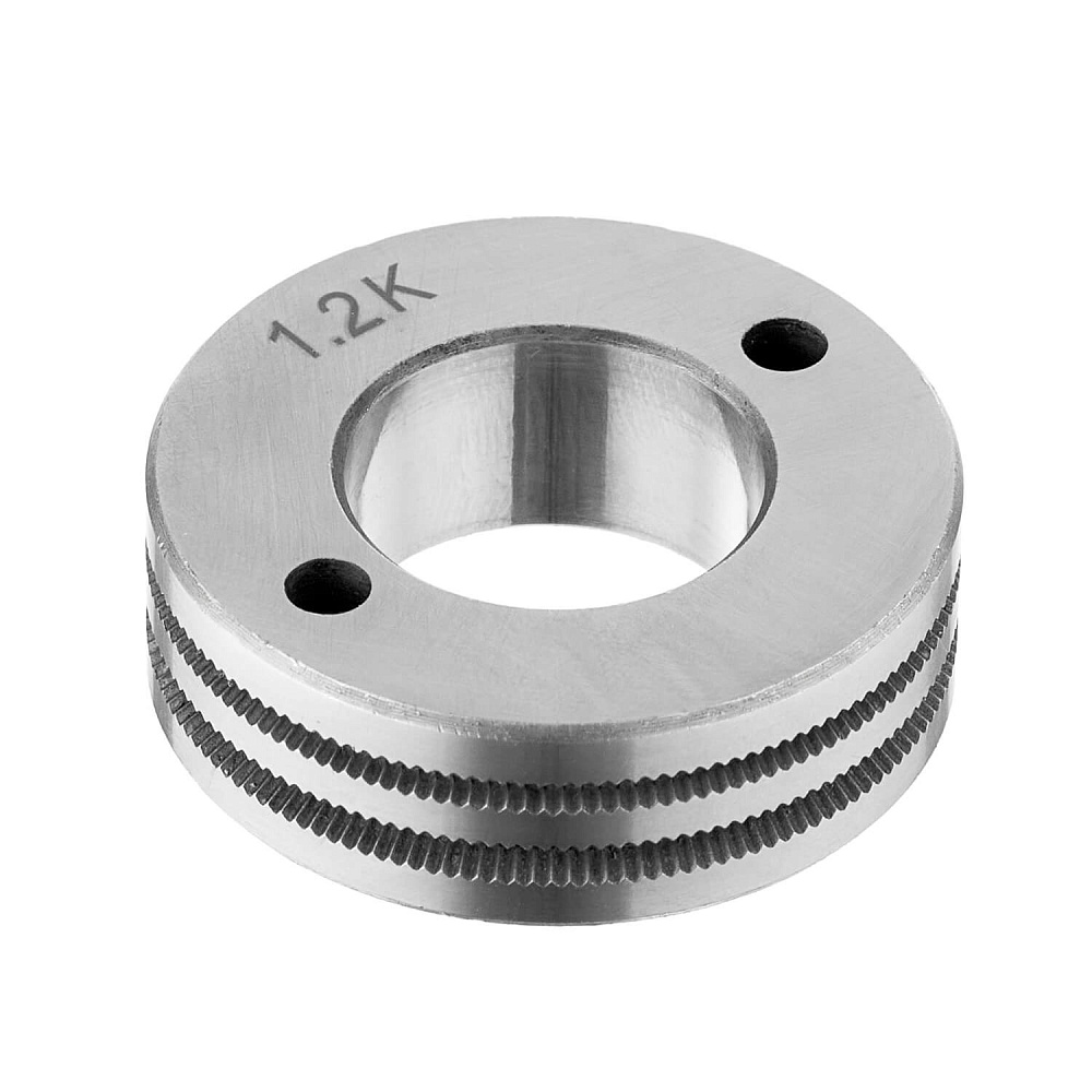 Ролик подающего механизма для сварочных полуавтоматов ПТК RILON MIG 500 DP TITAN, ПТК RILON MIG 500 DF. Это сменный элемент подающего механизма, который подбирается в соответствии с видом сварочной проволоки и ее диаметром. Данные ролики предназначены для работы с порошковой проволокой диаметром 1,2–1,6 мм. Размер роликов 37х19х12 мм. Подающие ролики имеют канавки K-образной формы. При изменении сечения проволоки необходимо перевернуть ролик нужной стороной и использовать его далее.