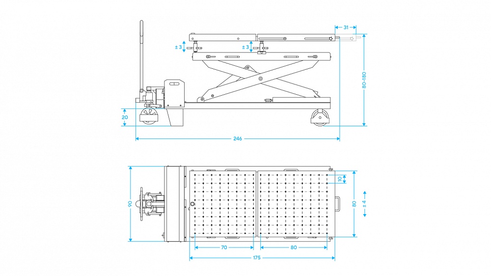 Нижняя платформа имеет боковую регулировку (±4 см) для точного позиционирования относительно посадочного места;