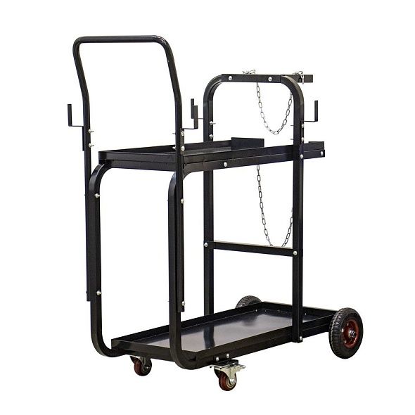 Тедлежка для сварочного оборудования AurorаPRO серии ULTIMATE  задумана инженерами компании для облегчения хранения аппаратов и их транспортировки в комплекте с баллонами по цехам, гаражам и другим производственным помещениям. На полках можно разместить все необходимые сварочные аксессуары.