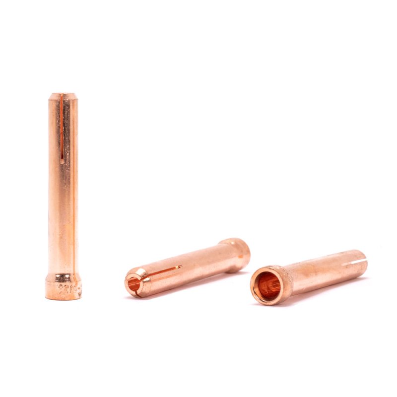 Цанга диаметром 2,0 мм выполнена из меди и вставляется в держатель цанги. Подходит для керамических сопел 9/20/25. Служит для плотной фиксации вольфрамового электрода в горелке TIG. Диаметр цанги должен совпадать с диаметром вольфрамового электрода, а также с диаметром держателя цанги.