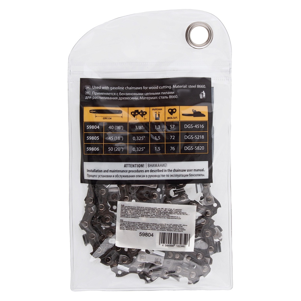 Цепь для бензопилы DGS-4516, шина 40 см (16") шаг 3/8", паз 1.3 мм, 57 звеньев Denzel