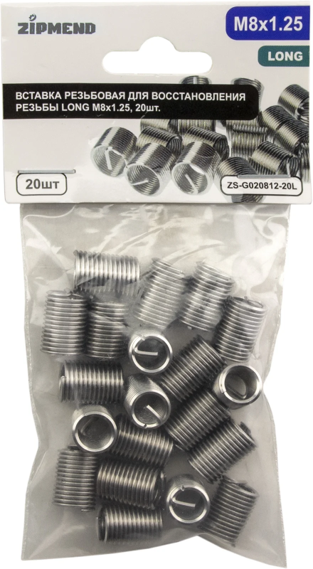 Вставка резьбовая для восстановления резьбы LONG M8 х 1.25, 20шт., ZIPMEND