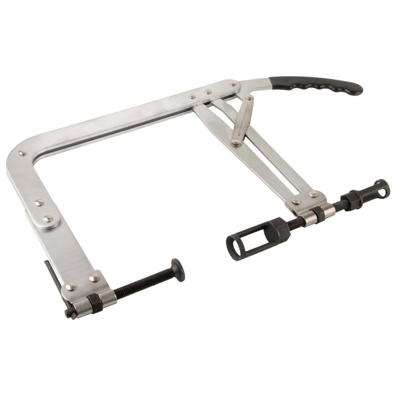 Универсальный рассухариватель клапанов предназначен для сжатия пружин впускных и выпускных клапанов. Выполнен в форме струбцины. Используется при снятой головке блока цилиндров. Регулировка рабочего хода с помощью резьбового вала в зависимости от длины клапана. Фиксация струбцины в необходимом положении позволяет освободить руки для удобства демонтажа стопорных сухарей клапана.