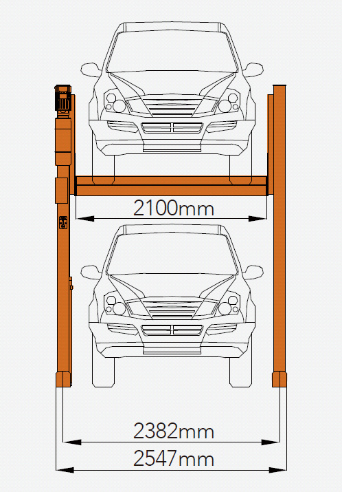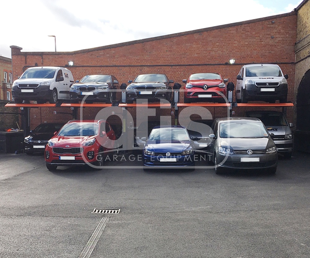 Подъемник выдерживает до 2.7 тонн на машиноместо и оснащён системой двойной защиты от падения.