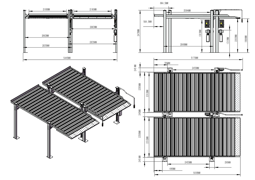 Компактный четырёхстоечный подъёмник, предназначенный для организации парковочных мест, хранения автомобилей и выполнения базных сервисных работ