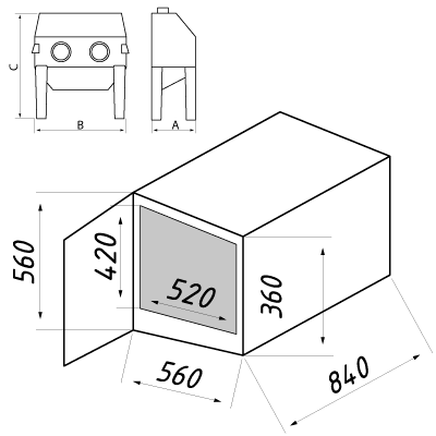 Камера пескоструйная фронтальная загрузка, объем 220 л