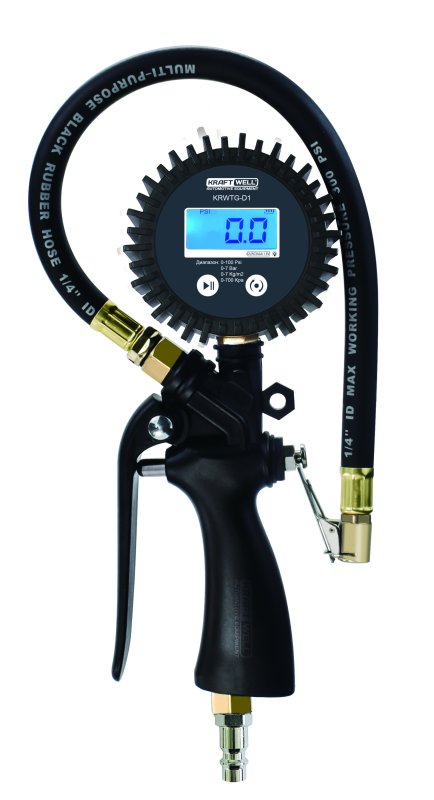 KRWTG-D1 KraftWell Пистолет для подкачки шин. В блистере. Цифровой манометр. Давление до 7 бар.