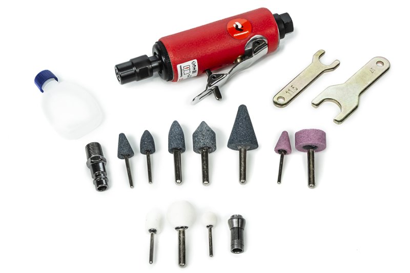 Пневмодрель с шарошками (бормашинка) широко используется в автосервисах, шиномонтажных мастерских, на производстве и в бытовых нуждах. Применяется для зачистки сварных швов, удаления заусенцев, шлифования поверхностей перед склеиванием. Корпус бормашинки с анти-скользящим покрытием.