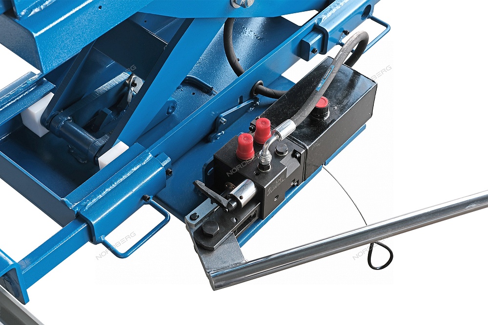 - Мощный насос и электродвигатель 380 В обеспечивают плавное поднятие и опускание;