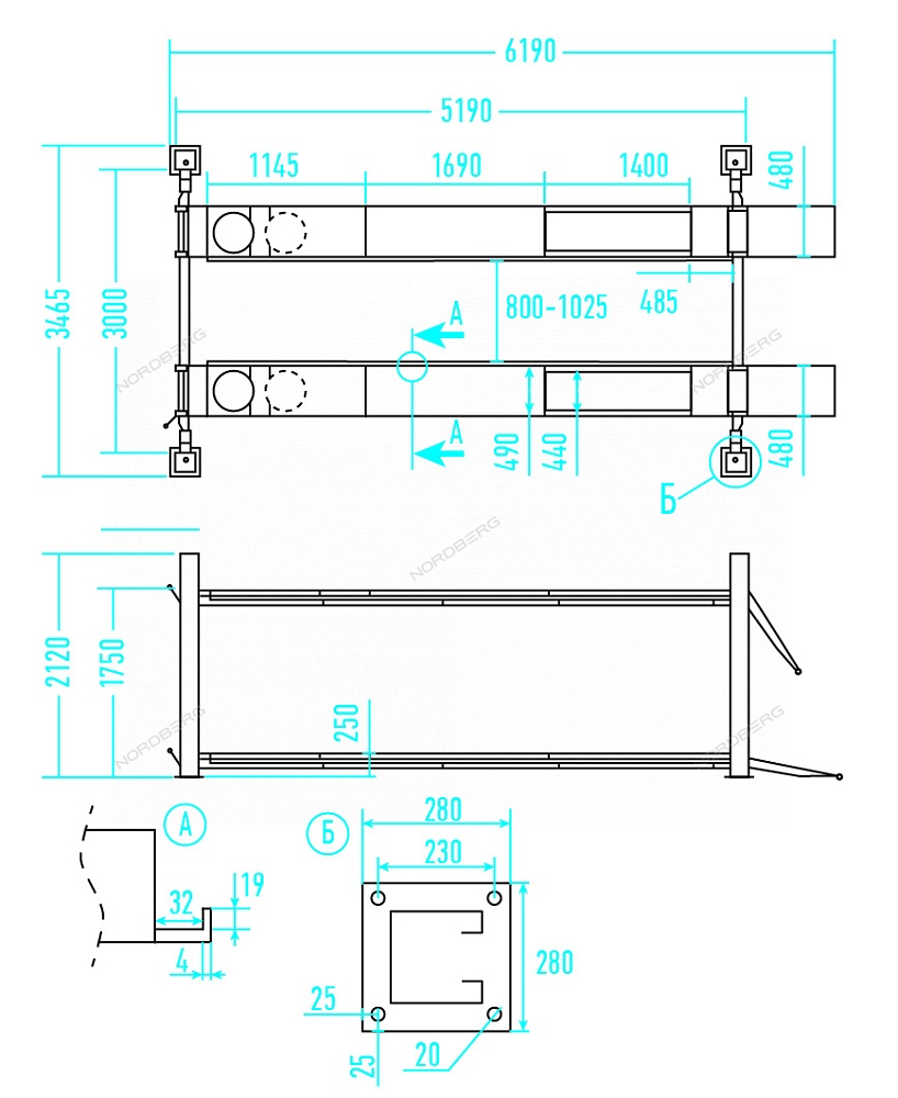 Подъемник четырехстоечный 5 т, без траверсы, для сход-развала, механическое снятие, синий NORDBERG 4450_MB купить в Тюмени цена ✅ - Все для СТО