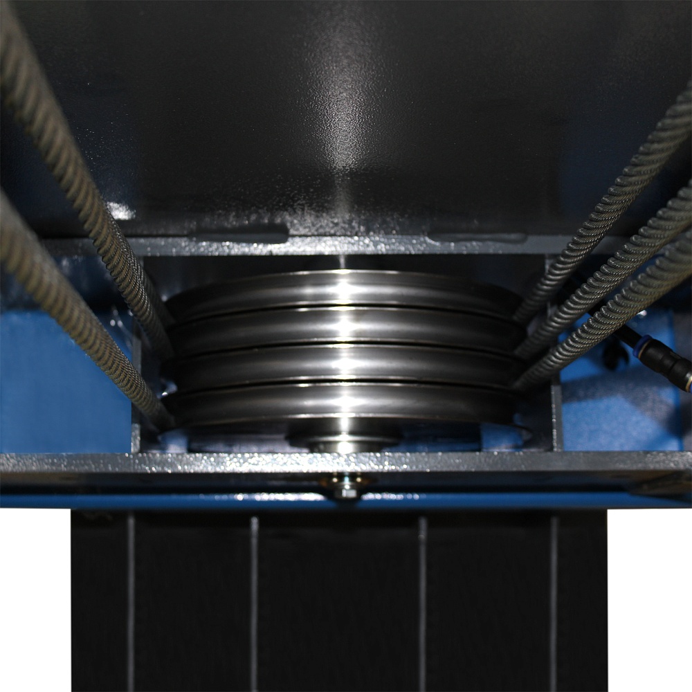 Каретки приводятся в действие гидравлическим цилиндром и системой стальных тросов. Оборудование имеет низкий уровень шума.
