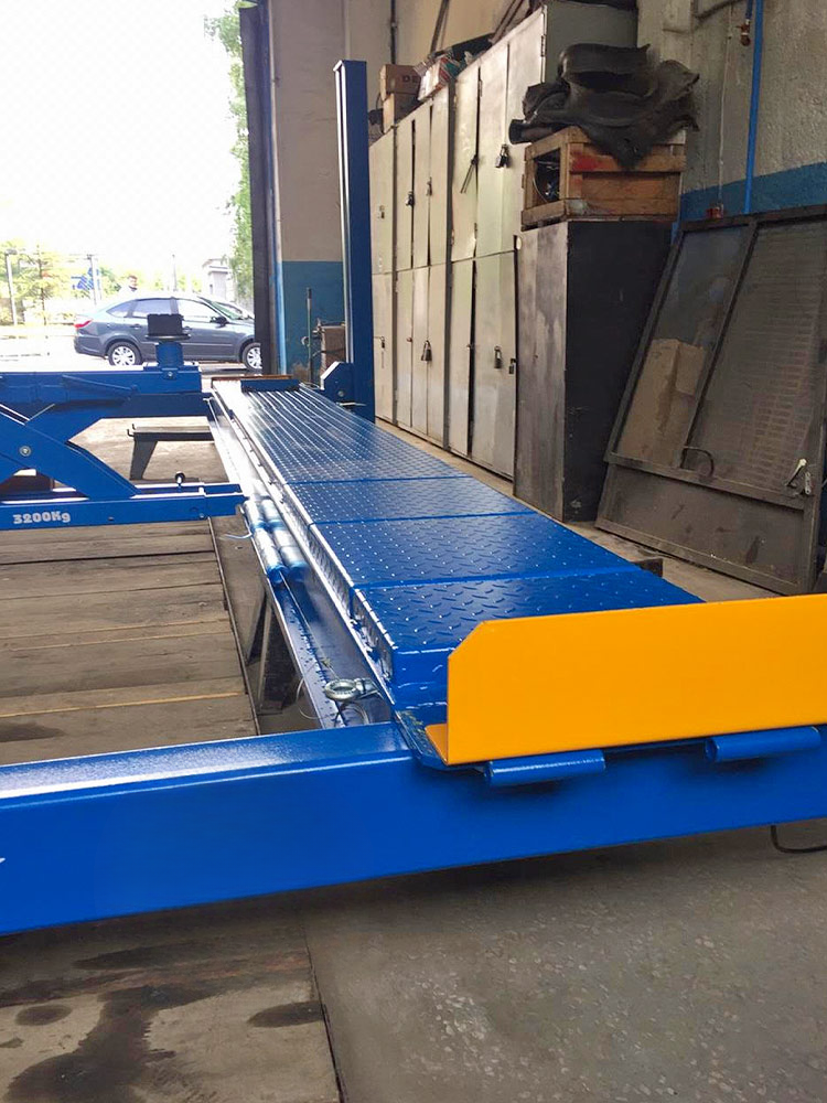 • Подъемник оборудован длинными сдвижными пластинами для удобной регулировки задней оси автомобилей с разной колесной базой.