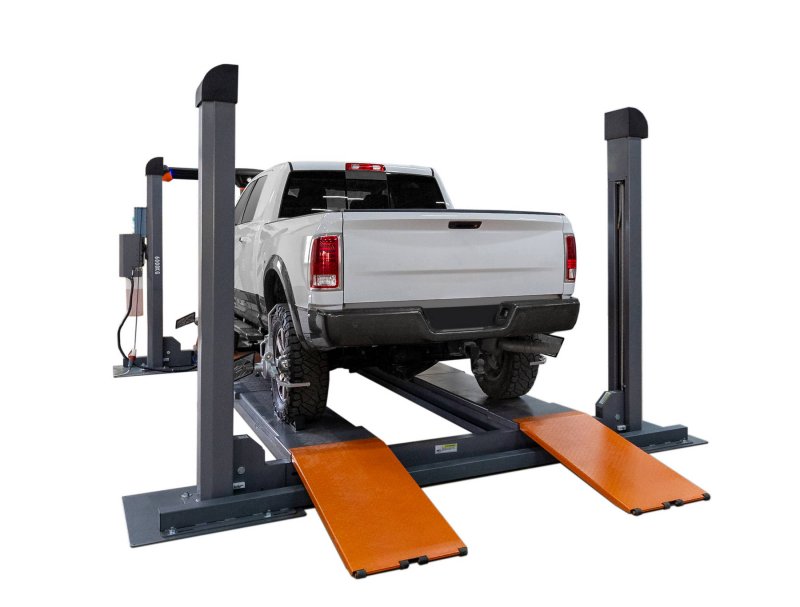 Подъёмник позволяет проводить диагностику, обслуживание и ремонт легковых автомобилей и небольших грузовиков, в частности, проводить работы по измерению и регулировке углов установки колёс.