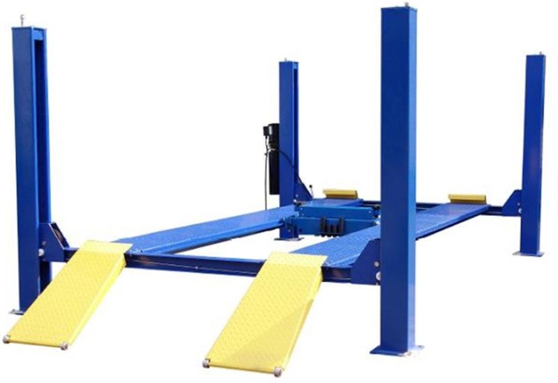 Подъёмник четырехстоечный SHL-4-450DE с электродвигателем и гидромасляным насосом предназначен для подъёма транспортных средств весом до 5000 кг.   Подъёмник позволяет проводить диагностику, обслуживание и ремонт легковых автомобилей и небольших грузовиков, в частности, проводить работы по измерению и регулировке углов установки колёс.
