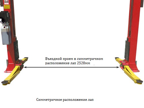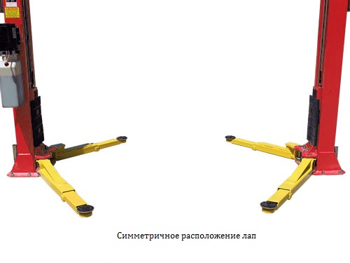 Электрогидравлический двухстоечный подъемник с асимметричной конструкцией, работающий по принципу верхней синхронизации.