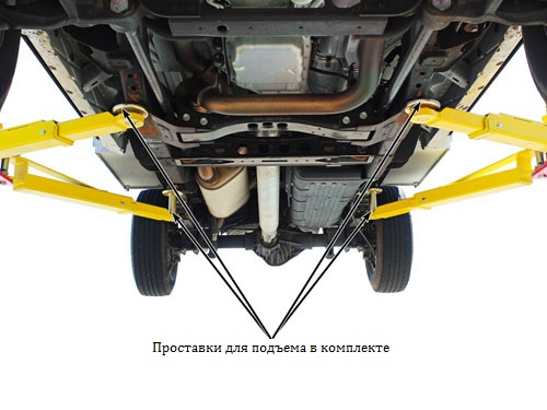Электрогидравлический 2-х стоечный автомобильный подъёмник с нижней синхронизацией и разблокировкой на двух каретках. Грузоподъемность 4 тонны.
