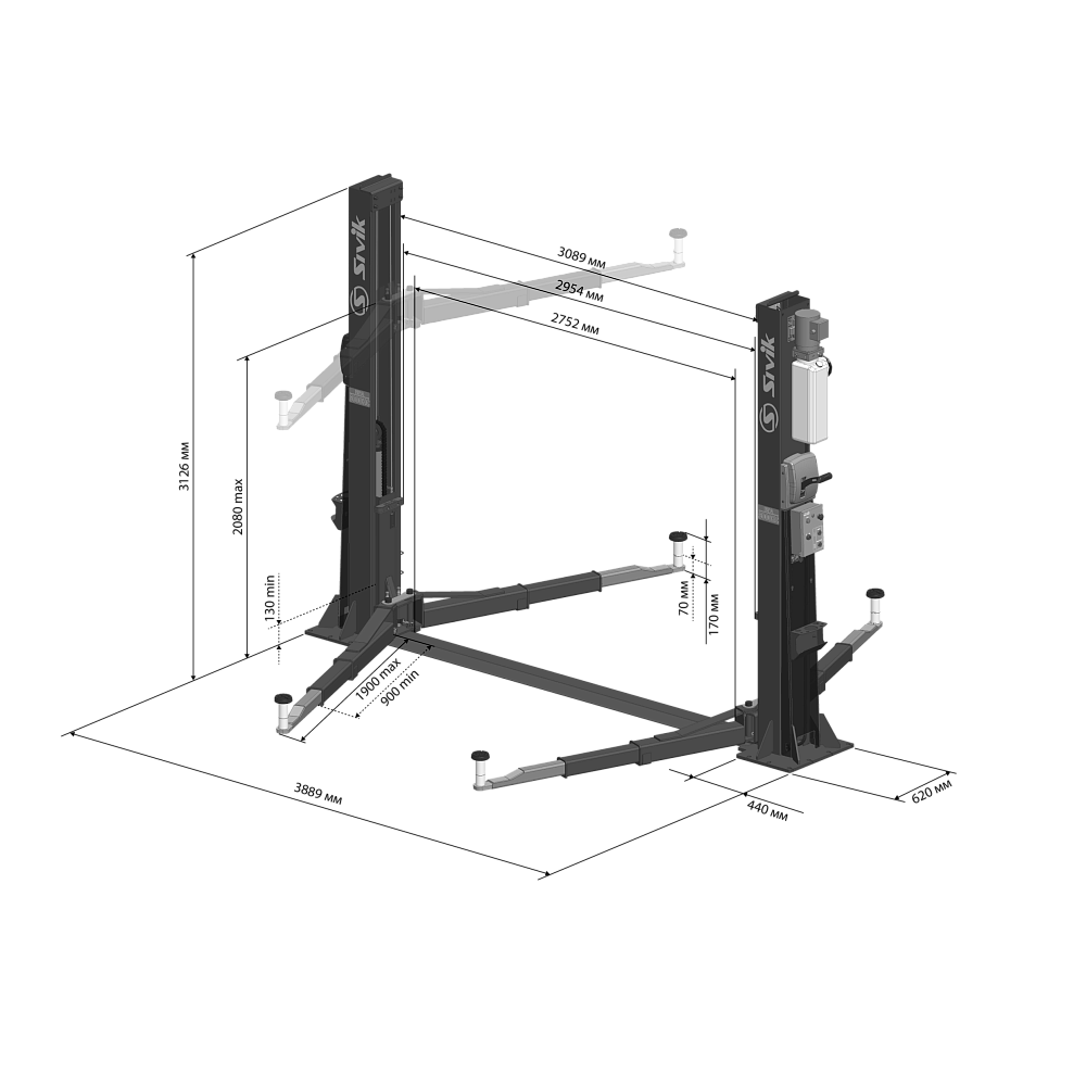 СИВИК ПГА-5000-НС Двухстоечный электрогидравлический подъемник г/п 5 тонн Серый