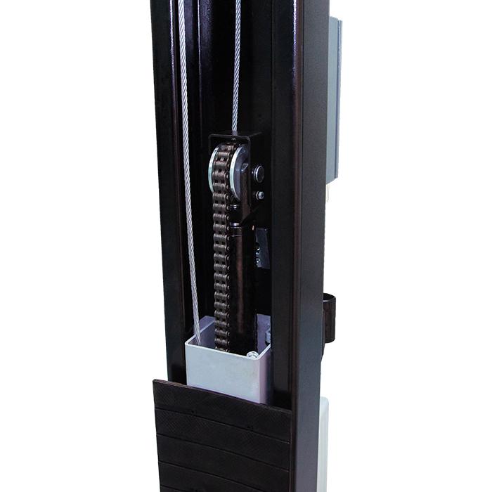 Двухстоечный электрогидравлический подъемник с нижней синхронизацией, грузоподъемность 5.5 т, механическое управление стопорами на одной колонне.