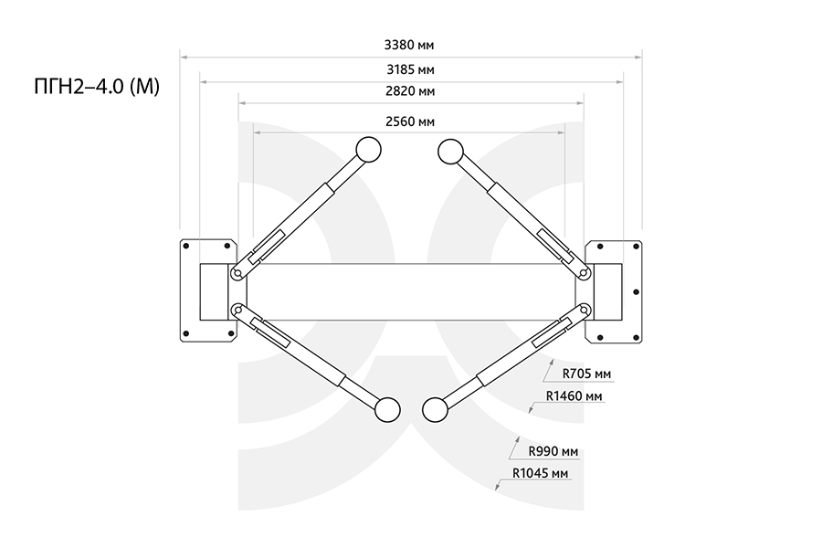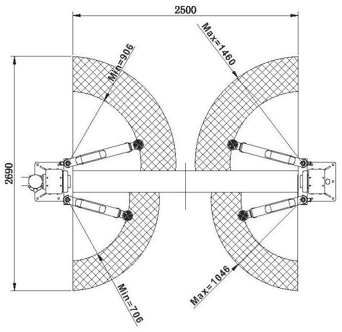 | Длина передних лап | 705–1045 мм | Ширина между стоек | 2820 мм |