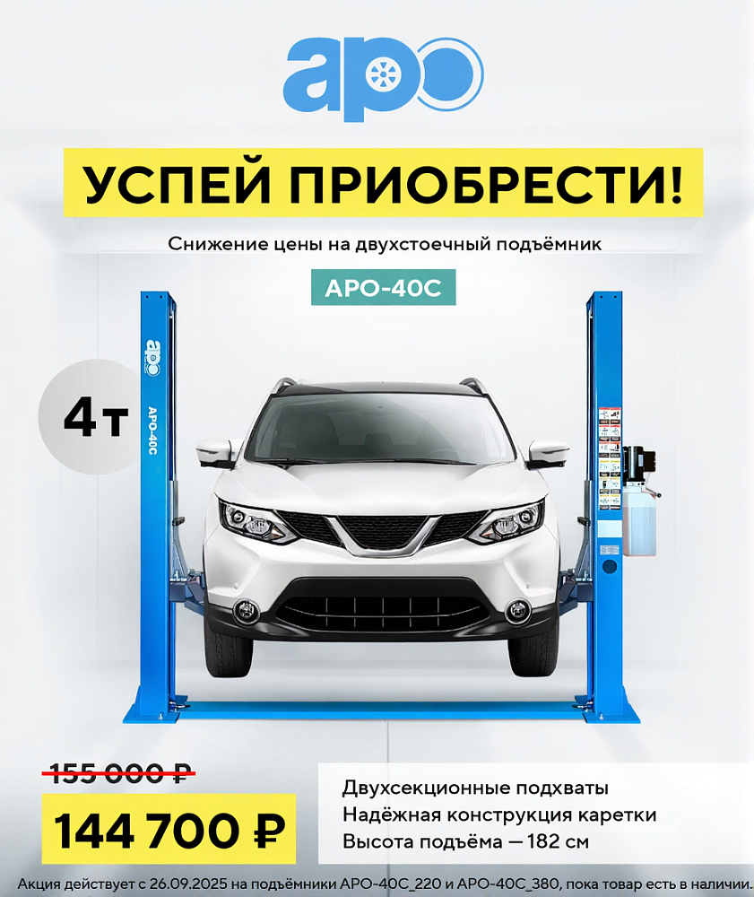 Двухстоечный подъемник APO-40C – безопасное и надежное оборудование для проведения различных видов работ по обслуживанию и ремонту автотранспорта в автосервисах и СТО.