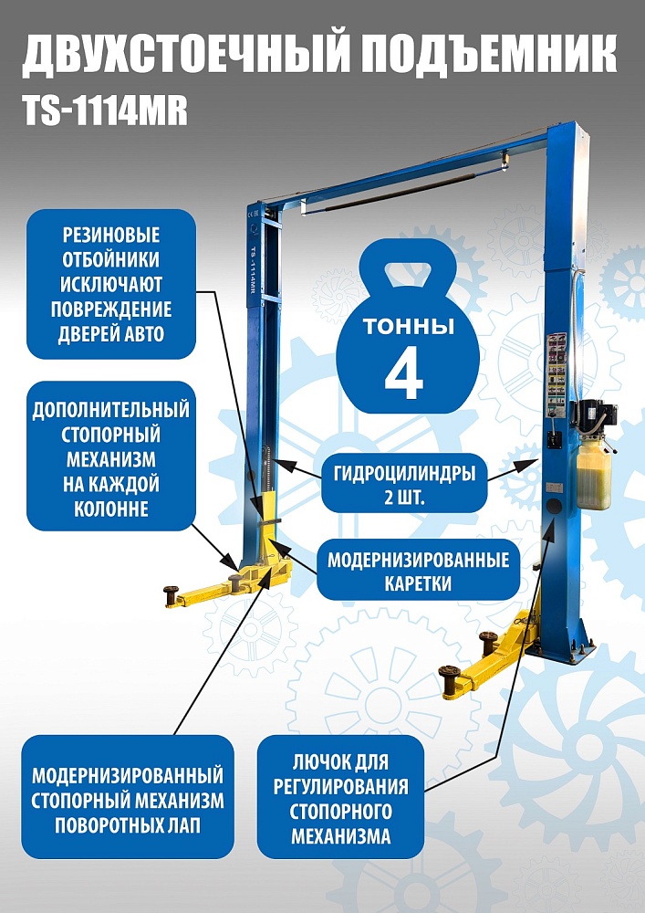 TS-1114MR подъемник 4 т, 2-х ст. электрогидравлический (2025) (220 V ТВ) купить в Тюмени цена ✅ - Все для СТО
