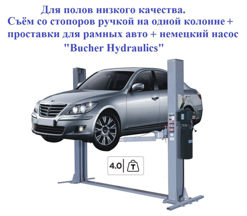 Для помещений с некачественными полами. Подъемник с напольной рамой + съем со стопоров через ручку на стойке + немецкий гидравлический насос "Bucher Hydraulics" + проставки для рамных авто (4 шт.) в комплекте. Высота подъема – 1900мм. Увеличенная толщина рабочих тросов. Цвет синий. Доставка по РФ, РБ и Казахстан.