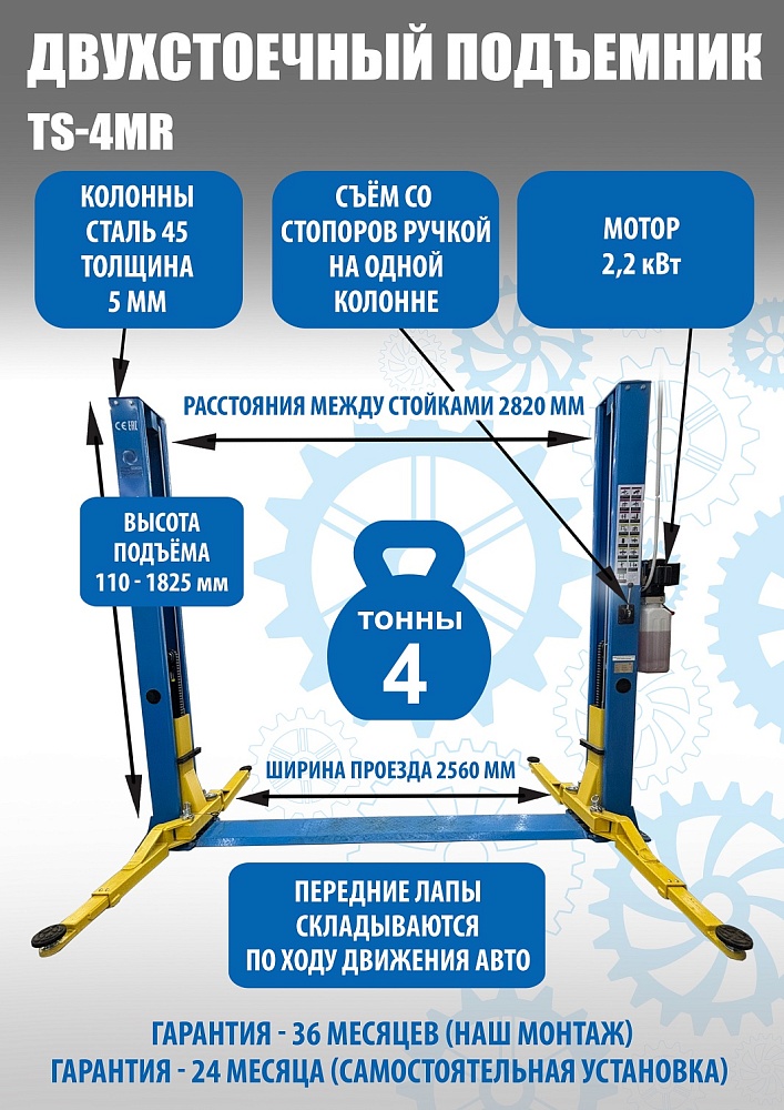 TS-4MR Подъемник 2-хст. г/п 4 т съем-ручка+проставки (2025) (380 V ТВ) купить в Тюмени цена ✅ - Все для СТО