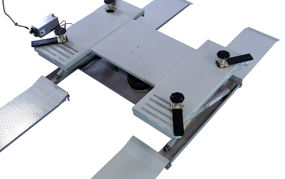 Универсальный подъемник для шиномонтажных мастерских и зоны приемки, может использоваться и как мобильный, без фиксации к полу, так и закрепленным на стационарном посте.