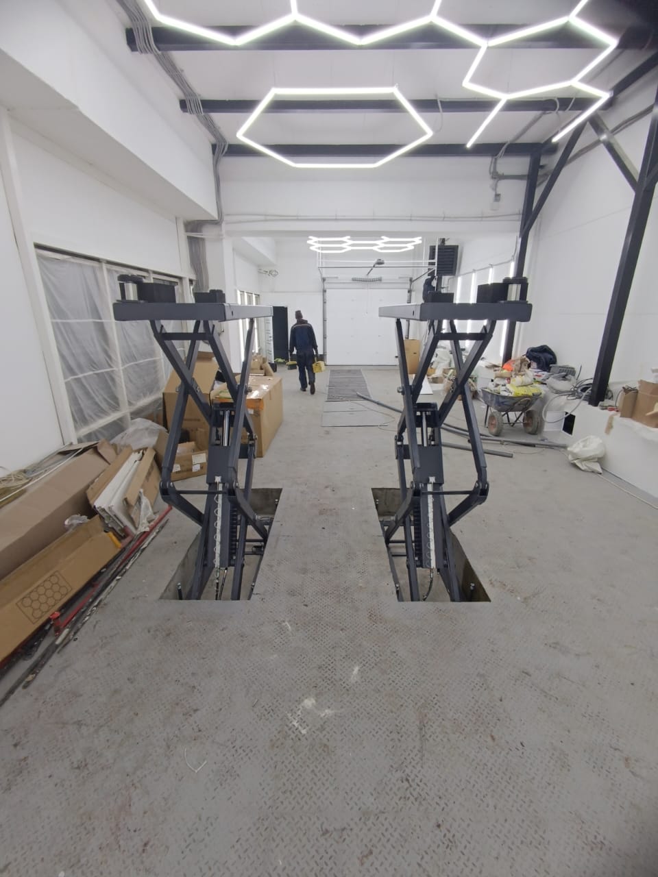 Мобильный ножничный подъемник с электрогидравлическим приводом для шиномонтажных и кузовных работ.