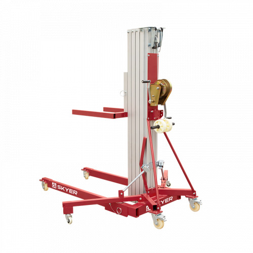 Телескопический подъемник SLA-25 представляет собой прочное, устойчивое и простое в использовании оборудование для подъема материалов. Складная мачта выполнена из легкого и долговечного алюминиевого сплава. Подъем груза осуществляется с помощью ручной лебедки. Для сборки и настройки материалоподъемника не требуются инструменты, с этим запросто справится один человек. Компактные размеры, малый вес и складные опоры упрощают хранение и транспортировку. Грузоподъемность модели достигает 250 кг.