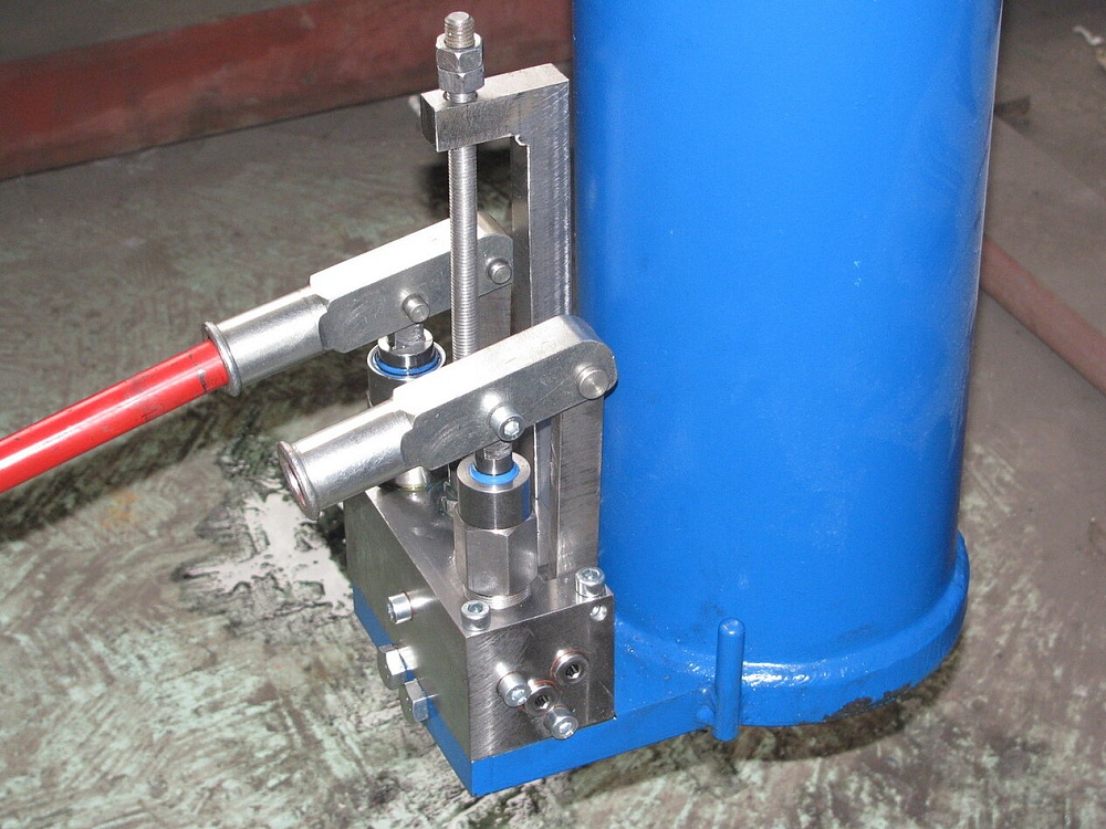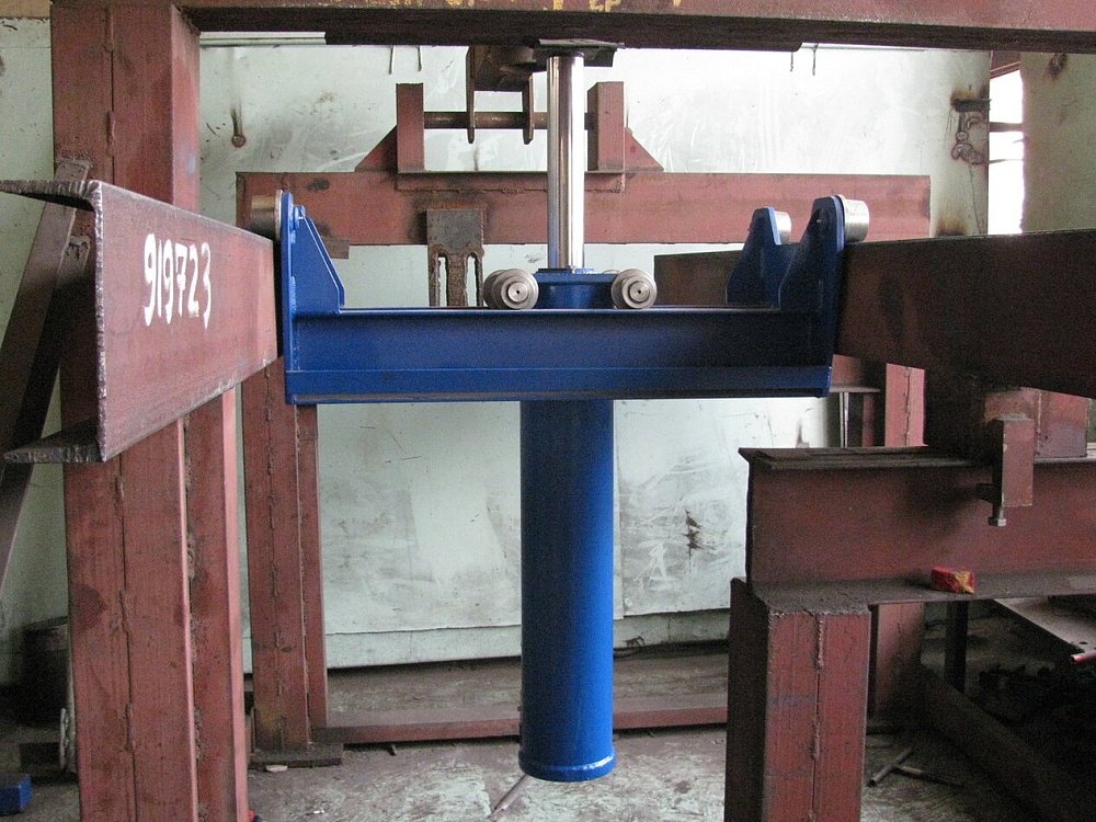Гидроцилиндр с насосом на каретке имеет возможность перемещения вдоль и поперек канавы, подъемника;