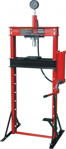 Пресс напольный гидравлический, c ножным приводом Развиваемое усилие: 10,0 т. Привод: ручной гидронасос. Ход штока: 135мм. Мин. рабочая дистанция: 90мм. Макс. рабочая дистанция: 858мм.
