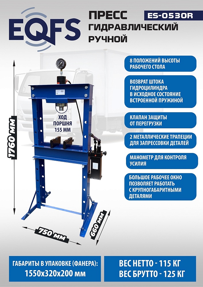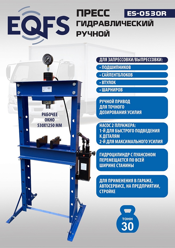 ES-0530R Пресс гидравлический ручной, 30 тонн купить в Тюмени цена ✅ - Все для СТО