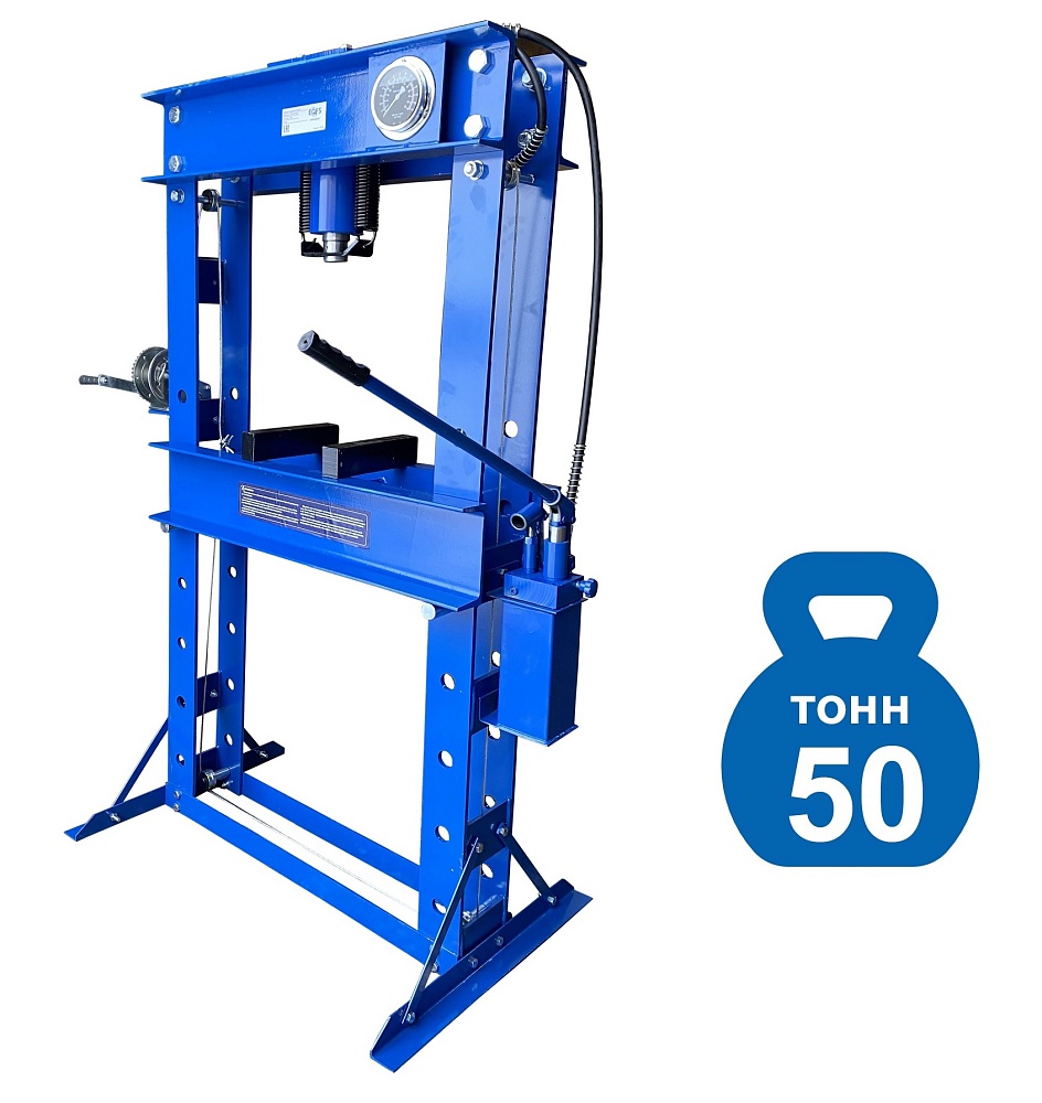 · Пресс укомплектован гидравлическим ручным насосом с максимальным усилием 50 тонн.