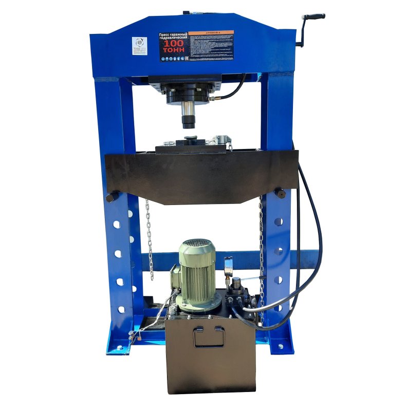Электрогидравлический пресс напольный, с двухскоростным насосом усилием 100 тонн. Мощность мотора 3 кВт. Напряжение 380В. Ход поршня 300мм. Рабочее окно 690х820 мм. Доставляем гидравлический пресс по всей территории РФ и странам ТС.
