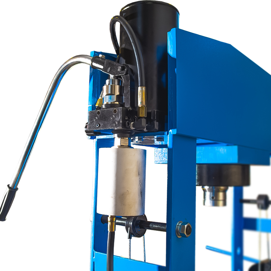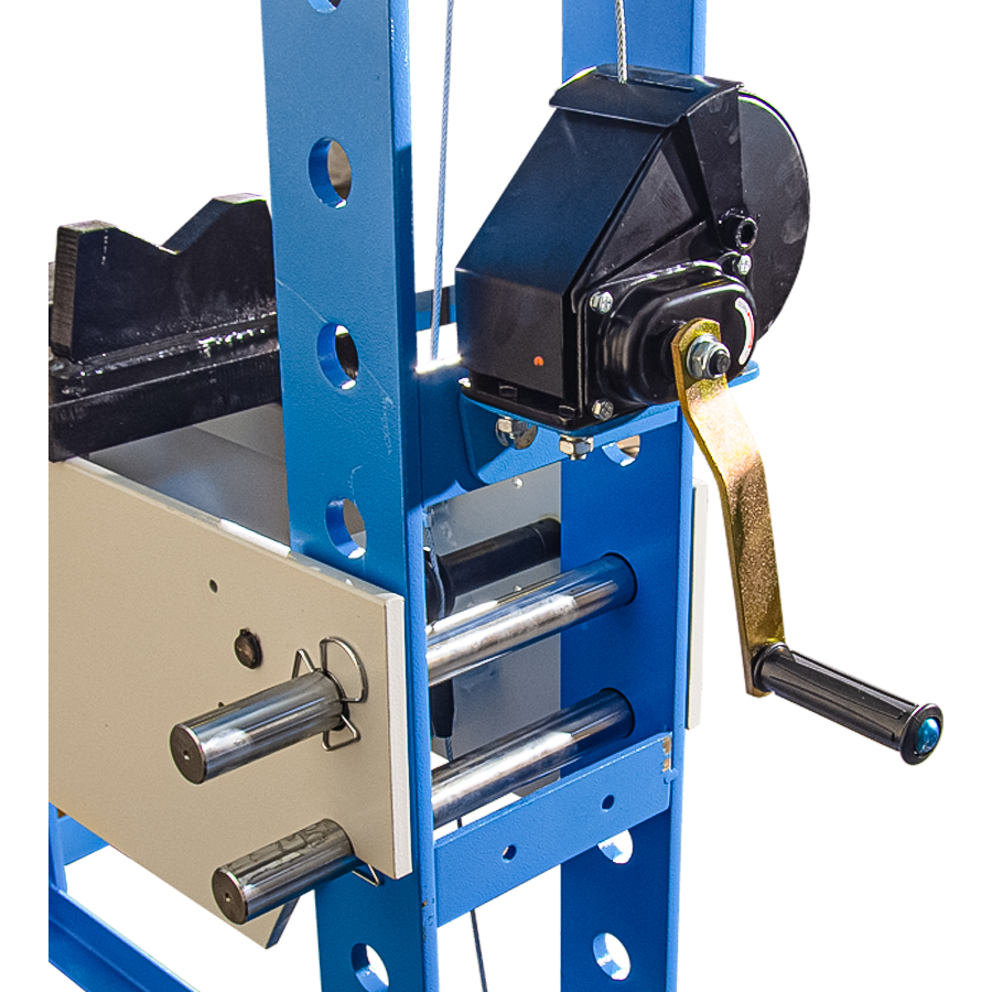 Пресс гидравлический 50 тонн, 264кг. металла, полностью сварная рама, управление ручное/пневматическое, клапан защиты от перегрузки, манометр, ручная лебедка. Ход поршня 220 мм. Рабочее окно 730х1068 мм. Рекомендуется для выпрессовки подшипников, деталей машин, втулок и т.п. в автосервисе, гараже и СТО. Цвет синий.