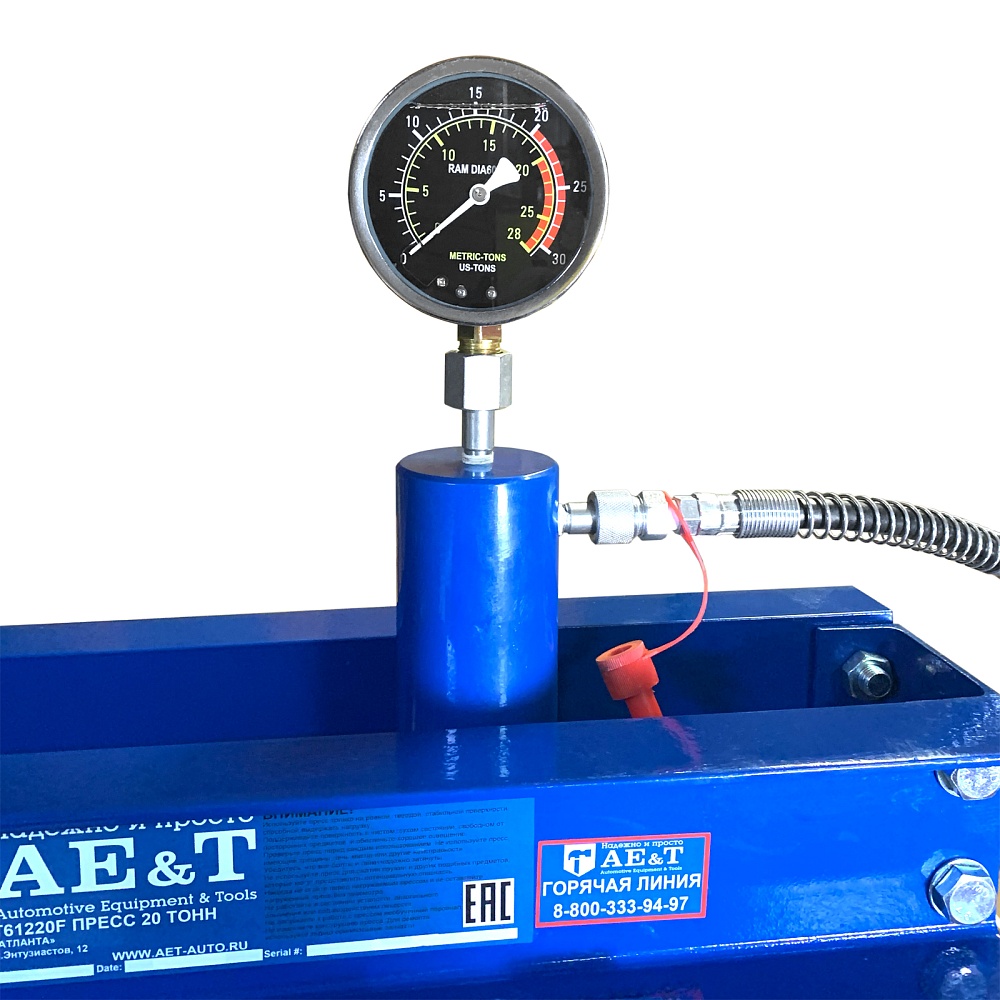 - Манометр с большим циферблатом позволяет рассчитывать усилие на деталь.