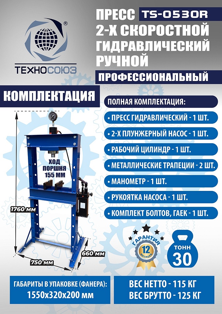 TS-0520R Пресс гидравлический ручной, 20 тонн купить в Тюмени цена ✅ - Все для СТО