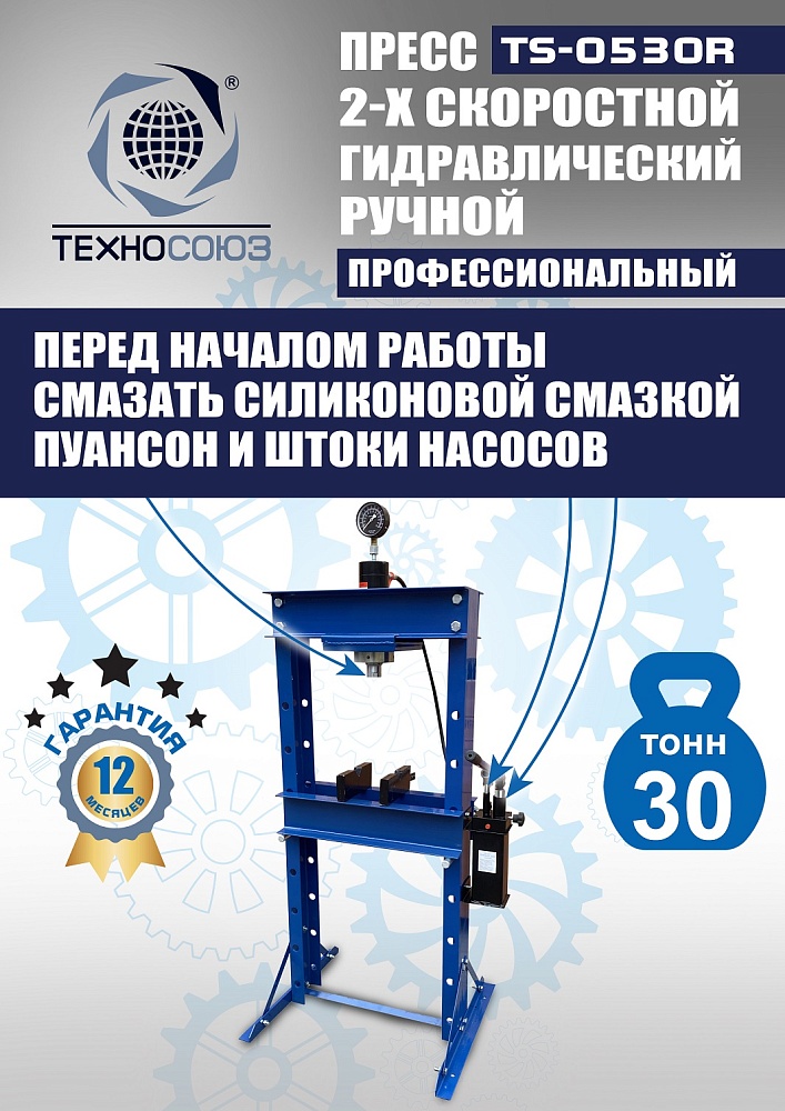 TS-0530R Пресс гидравлический ручной, 30 тонн купить в Тюмени цена ✅ - Все для СТО