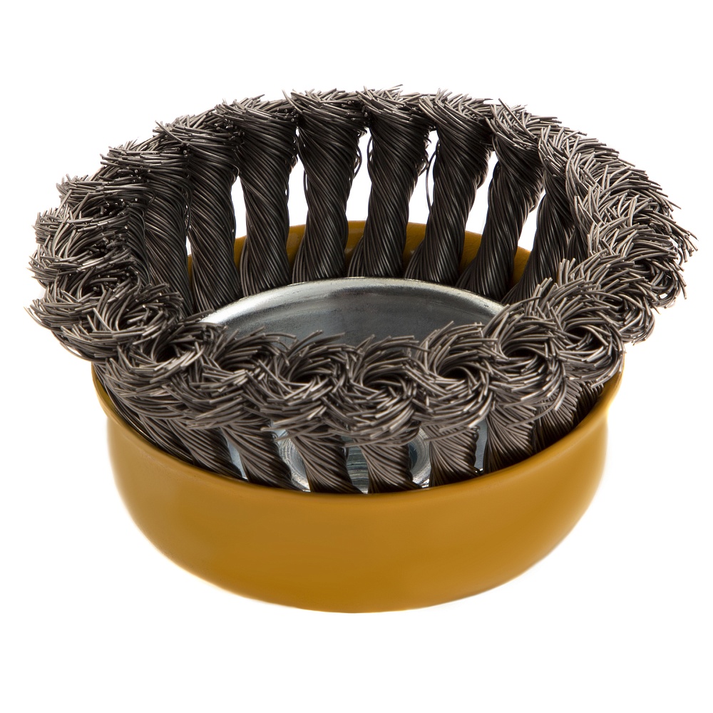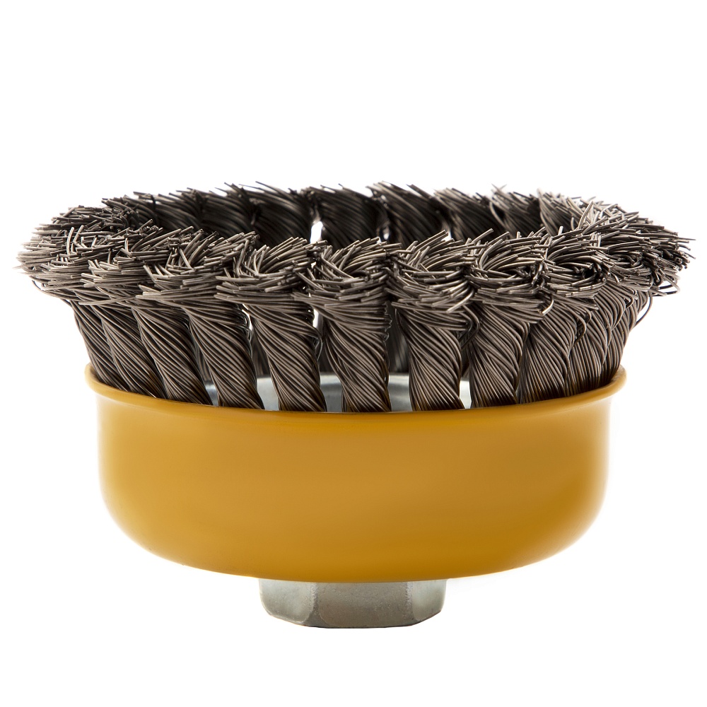 Щетка для УШМ, 100 мм, "Чашка", крученая нержавеющая проволока 0.5 мм, М14 Denzel купить в Тюмени цена ✅ - Все для СТО