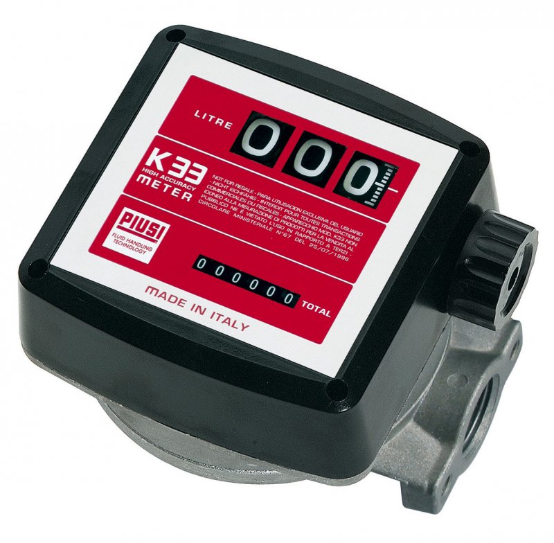 Механический расходомер, разработанный для измерения точного количества отпускаемого топлива или смазочных материалов. Предназначен для некоммерческого использования. Недорогой, надежный расходометр легко устанавливается и калибруется прямо на рабочем месте. Благодая низкому сопротивлению потоку подходит также для использования на самотечных линиях. Модель K33: 3-разрядая промежуточная цифра (максимум 999 литров), 7-разрядная общая цифра для суммарного счетчика.